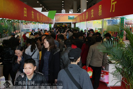 正在南宁国际会展中心举办的第一届广西名特优农产品交易会受到南宁市民青睐,展出的广西各地名特优农产品供不应求,会展中心内市民川流不息,成为南宁市民周末游的热闹地点。据悉,这次名特优农产品交易会将一直持续到本月15日结束。