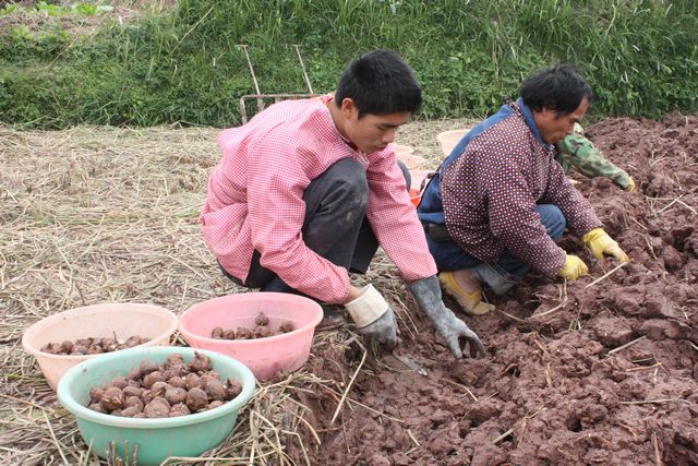 近年来,荔浦县已形成了具有一定规模的三大马蹄生产基地:以“广西马蹄之乡”著称的青山镇2万亩马蹄标准化无公害生产基地;修仁镇1.5万亩马蹄标准化无公害生产基地;十里“马蹄长廊”――大塘、花涸、双江、马岭等乡镇的3万亩马蹄标准化无公害生产基地。在基地的带动下,全县形成“一户带一组、一组带一村、一村带一片、一片兴一业”的局面,马蹄种植已经成为农民增收的支柱产业,今年9万多亩马蹄喜获丰收,预计产量超20万吨。图为该县杜莫镇群众正在赶收马蹄。