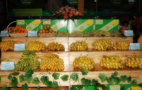 本届农交会南宁市展出品种丰富,展会亮点多多。南宁市主题馆前两个由胡萝卜和玉米拼成的近两米高的巨大模型吸引了众多市民前来合影。再往前看,南宁市十大优势产业的灯箱旁,一个用天然金蚕茧粘成的巨大金元宝仿佛给农民朋友们指出了一条致富之路。在邕宁展区,58斤重的淮山王霸气十足;江南展区摆出了紫黑绿白四色茄子出奇制胜;展区上方“中国香蕉之乡”的灯箱表明了西乡塘区的主打产品,他们的“金坛王”香蕉多次参加北京上海农展会,在全国都享有较高的知名度;马山县的黑山羊驰名中外,这次他们带来了黑山羊神酒,口味独特强身健体;此外,像隆安县的丁当鸡,上林县的香米,宾阳县的莲藕,横县的茉莉花茶,兴宁区的葡萄、苦瓜,良庆区的蜂蜜、乳制品,青秀区的鹿茸,武鸣县的香蕉也都吸引了不少市民争相观看、购买。据统计,截止12日下午,全市展位销售金额共2203.74万元,签订合同、意向书209笔,签约金额91600.41万元。