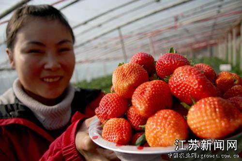 室外寒冬至,棚内果飘香。眼下,江苏省东海县4万余亩温室无公害草莓陆续成熟,每公斤40元俏销市场,且供不应求。
