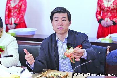 江苏省海洋与渔业局副巡视员林建华竖起大拇指称赞泗洪大闸蟹品质一流