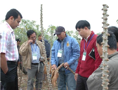 11月27日至12月2日,三年一届的“第九届亚洲木薯研讨会”在南宁市召开,作为广西最大的木薯种植及木薯淀粉生产县―――武鸣,我县被作为此次研讨会的一个参观点。当天,在县农业局局长陆耀华的带领下,来自国际热带农业中心、日本财团、泰国、印度尼西亚、柬埔寨、马来西亚、印度、老挝、越南、美国、新加坡、菲律宾、哥伦比亚、尼日利亚、中国等15个国家的近160名代表参观了我县的太平镇文坛村木薯高产示范基地。