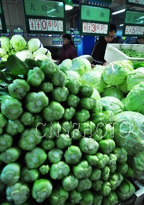 2011年12月10日,消费者在山东邹平县一超市购买蔬菜。