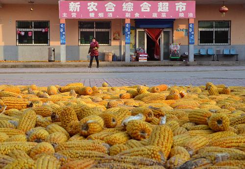 12月15日,一位村民走出河南省孟津县梁凹村的一家超市。