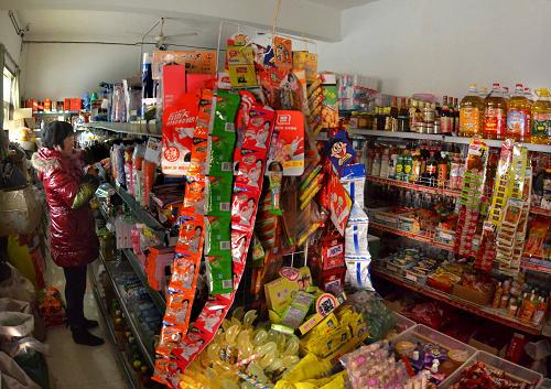 河南省中牟县雁鸣湖镇一个家庭农村超市外景(12月12日摄)。