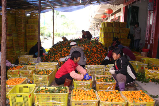 砂糖橘是苍梧县规模最大的农业优势产业,是农民增收的重要支柱之一。目前,全县共种植砂糖橘10.5万亩,其中今年挂果的达8.5万亩,预计总产量达18万吨,比去年增加1万吨。为做好砂糖橘销售工作,苍梧县成立了由分管农业的副县长任组长的砂糖橘销售工作领导小组,制定《苍梧县2011年砂糖橘销售工作方案》。各部门密切配合,县农业局牵头做好砂糖橘的产区、面积、产量、上市销售时间等信息收集、报告、发布工作。针对有可能出现的砂糖橘滞销的状况,县工信局牵头制定砂糖橘滞销应急预案,加强对砂糖橘市场的预测监测,收集、分析区内外市场砂糖橘需求、价格、数量、时间等信息,进一步完善砂糖橘价格监测体系,建立并完善砂糖橘价格的预警机制。每周组织会商,研判市场变化趋势,发布砂糖橘市场信息,巩固砂糖橘销售传统市场,开辟新市场。县住建局负责在城区设置临时性、季节性农产品直销市场(摊点),并加强管理。同时,充分发挥水果专业合作社、公司、销售、流通、种植大户的作用,组织他们走出去,到各大销售区进行宣传、推介、销售活动,拓宽销售渠道。同时,针对即将出现的寒潮天气,农业部门指导果农利用农膜做好对未采收砂糖橘果树的覆盖保护工作,防止不良天气对砂糖橘的损害。同时,指导果农运用树上防冻保鲜技术,对砂糖橘实行分批采收销售,避过上市高峰期,延长砂糖橘销售期。