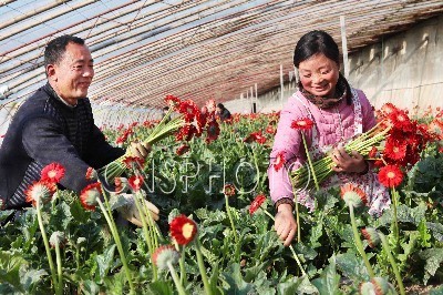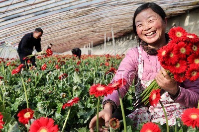 2011年12月19日,江苏省赣榆县金山镇赵湖村村民赵忠芳在采摘销往南京市场的非洲菊。