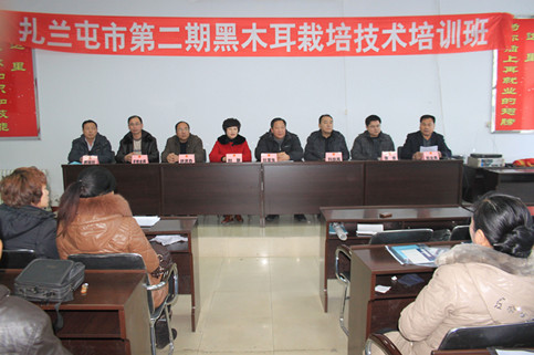 12月15日,扎兰屯市第二期黑木耳栽培技术培训班在市就业局培训中心开班。市人大副主任杜宝生及就业局、农牧业局、团市委、市妇联、科技局、扶贫办、供销联社负责人出席开班仪式。