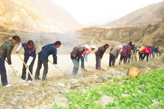 连日来,文县利用农闲时节,发动群众积极投工投劳,对全县通村公路开展整修养护工作,掀起了民工建勤养护公路热潮。图为中寨乡群众养护通村公路时的情景。