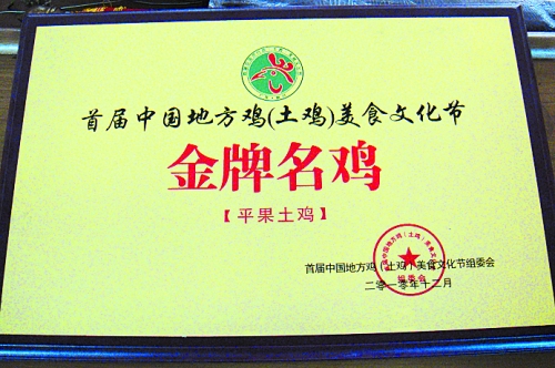平果县林下养鸡场环境优良,所产土鸡品质上乘。平果土鸡在首届中国地方鸡(土鸡)美食文化节中被评为“金牌名鸡”。