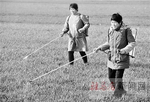 适时打药,消灭病虫害,实现小麦良种高产优产。