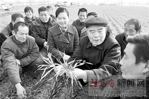 在驿城区顺河街道办事处李庄村的小麦良种繁育基地的田间,农业专家张自亮,正耐心向群众讲解当下小麦蚜虫害高发时期小麦如何强苗壮苗的科学管理办法。由于今年天气持续高温,阴雨连绵,小麦出现了不同状况的病虫害,为了保证小麦良种的品质,李庄村委专门邀请驻马店市著名农业专家为村民讲授麦田管理相关知识。