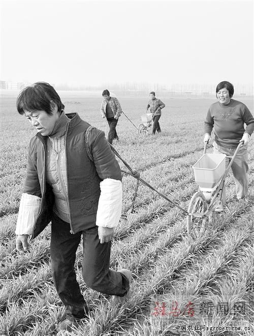 在专家的指导下,李庄村村民通过追肥管理实现小麦强苗壮苗。