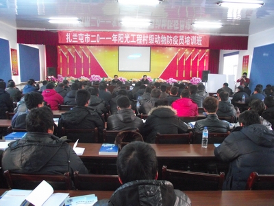 为深入开展畜牧系统岗位大练兵活动,进一步提高基层动物防疫员队伍素质,12月22日,由扎兰屯市兽医局举办的2011年阳光工程村级动物防疫员培训班在蘑菇气镇培训中心召开,来自扎兰屯市西南部各乡镇、办事处的140余名乡镇畜牧兽医工作站站长及防疫员参加了培训。培训会议由市兽医局局长张荣贵主持,兽医局动物疫病防控中心的专家王相平、崔兰芝授课。