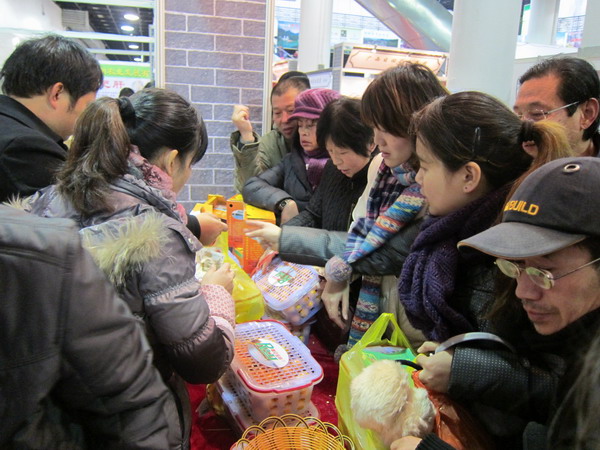 正值圣诞节期间,广西壮族自治区农业厅主办的2011广西名特优农产品上海展销会,柳州市组织了50多种约30吨的名特优农产品前往展销,引来上海市民疯狂抢购,短短2天便销售一空。中华名果―柳州冬葡萄、中国名牌产品―“网山”牌白砂糖、地理标志保护产品―融安金桔、百果之王―百香果等更是吸引上海市民抢购热潮,展位前总是挤满顾客。参展商们纷纷表示,下次要充分做好准备,拿来更多更好的产品供上海市民选购。