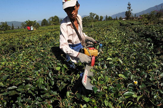12月24日,一名勐撒镇茶农在为茶树剪枝争取来年好收成。