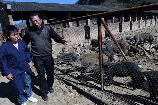 12月24日,勐撒镇领导在镇里了解野猪生长情况。