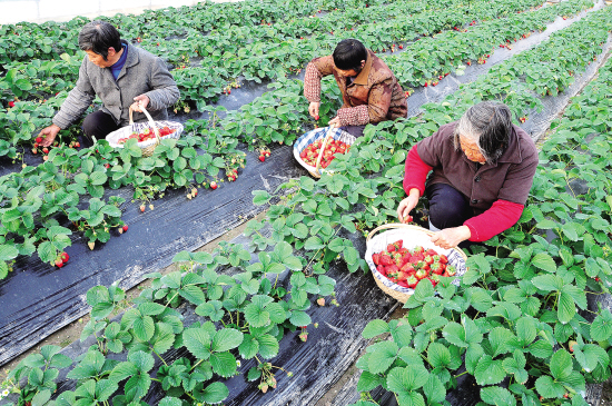 太仓市璜泾镇孙桥村以专业合作社形式促进农民增收,去年以来引进种植50多亩日本草莓,亩收益在2.5万元左右,亩效益提升近10倍。