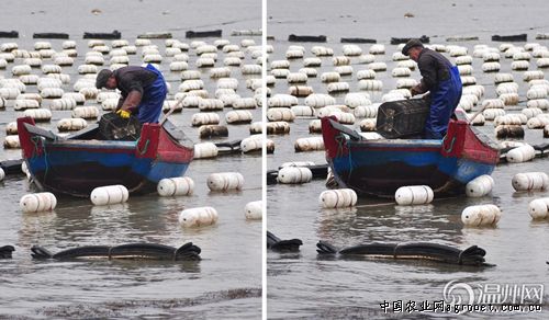 “更为重要的是,通过认购认养,市民可以参与到刺参养殖的过程,平时刺参由农民负责养殖、管理,到收成的时候,市民可以来体验、观察。”12月28日,记者随同陈坤东坐船来到一片广袤的近海区域,海面上浮现出一个个吊笼,刺参就养殖在吊笼里面。“现在刚刚养了不多久,每年10月份放下去养殖,第二年6月底,就可以收成了。”