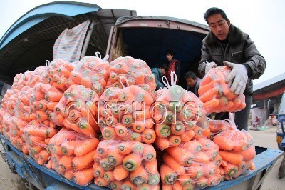 12月30日,元旦、春节临近,安徽省亳州蔬菜批发市场蔬菜货源供应充足,蔬菜价格平稳,市场交易红红火火。据亳州市农产品有限责任公司工作人员介绍,为保障元旦、春节蔬菜供应,该公司拓展了货源渠道,增加了市场储备,并组织专门 人员分别到山东、武汉、海南等调进80余种蔬菜,节日期间亳州市蔬菜供应量将达500万公斤左右,同时,增加了蔬菜安全检测力度,每天抽检达60批次,确保节日期间供应果菜的安全卫生,让群众买到食用安全放心菜。