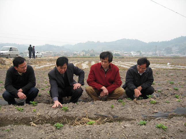 调研组在天峨县秋种马铃薯生产示范点,对天峨县积极引进脱毒原原种在高海拔地区夏繁,并留种秋种示范获得初步成功,为河池市甚至我区脱毒良种扩繁积累了宝贵经验给予肯定,建议天峨县多方争取资金扶持,加强技术攻关,加大夏繁留种力度,为缓解我区秋种马铃薯生产用种紧张局面作出积极贡献。在金城江区检查地膜覆盖冬种马铃薯生产和新技术推广工作时,调研组要求农技部门认真借鉴和汲取各地先进经验,加强宣传培训,提高技术到位率,及时指导种植户盖好膜、压好泥、管好水、防好霜,高标准、高质量搞好示范,带动当地马铃薯生产发展。在南丹县调研冬种油菜生产时,调研组对南丹县采取有力措施千亩连片示范推广双低油菜,努力打造休闲农业、观光旅游农业给予了充分的肯定。