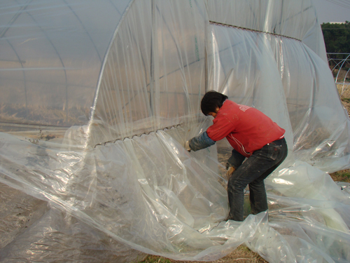 连日来,桐乡市龙翔街道董家茭白基地内茭农纷纷抢抓晴天,开始给大棚盖上薄膜,为明年大棚春茭生产做好准备。