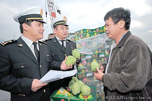 12月14日,27.75吨释迦等台湾水果被运抵厦门东渡同益码头。厦门海关隶属的东渡海关查验关员加班给予了快速验放。