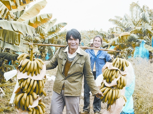 在南宁市铭和农资有限公司香蕉生产基地,香蕉树上已挂满香蕉果实,一部分蕉农正在采摘香蕉,另一部分蕉农对香蕉进行清洗和包装。该公司总经理陆财铭介绍,根据合作协议,该香蕉基地的2000亩香蕉将每天向上海供应6万公斤左右的成品香蕉。