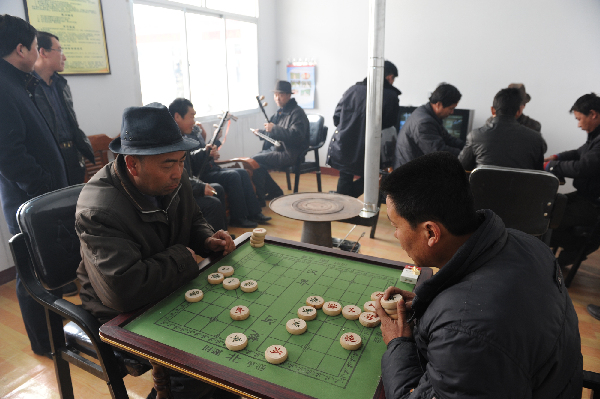 2011年,和政县多渠道整合资金439万元,对城关镇西关村、三合镇石虎家村等10个乡镇的14个行政村活动场所全面改建或重建,建成后的村活动场所成为群众学习知识、休闲娱乐的好去处。图为三合镇群众正在石虎家村活动中心娱乐。