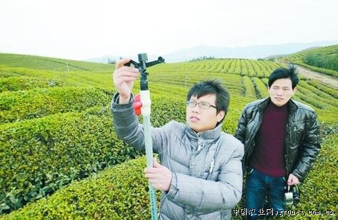 近日,技术人员正在宁波余姚大岚镇对茶园喷滴灌设施进行验收。