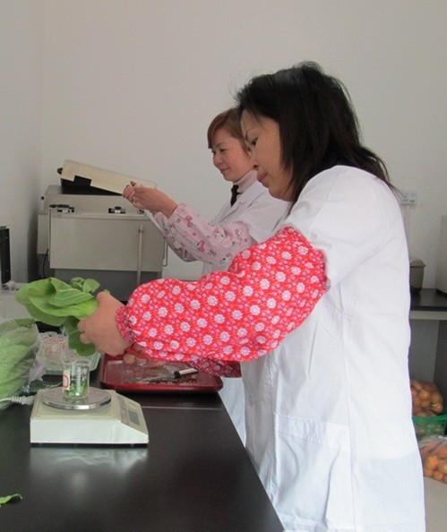 当天上午,调查跟随检测人员小窦和小林分别到1区9栋2号金兰蔬菜批发部和1区9栋4号昭辉蔬菜批发部,分别抽取产于南宁的茄子、青瓜、上海青和油麦菜进行检测。检测过程中,检测人员经过热机准备―调零调百―对照―取样―保存检测结果共五个步骤,对抽样蔬菜进行认真细致地检测。据检测人员小窦和小林介绍,经过这样的检测,能准确地检测出蔬菜里是否有残留的农药等有害化学物质。而经他们检测发现,宏进农副产品批发市场的蔬菜监测合格率达99.9%。