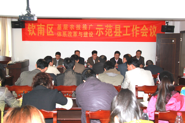 为进一步推进基层农技推广体系改革与建设,增强基层农技推广工作活力,提高农技推广工作效能。1月11日,钦南区农业局召开基层农技推广体系改革与建设示范县工作会议,局各股室负责人、各二层单位负责人、各镇农业站正、副站长,示范基地科技指导员、技术负责人共70余人参加了会议。