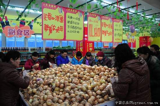 义卖会上,天为超市与方邱湖农场签约批购进20吨黄皮洋葱。农场副场长李永昌说,“目前,除了天为超市方面收购了一部分洋葱,还推销了一些。”不过,目前,仍然有40万斤洋葱堆在仓库。李永昌说,“还是不太乐观,我们希望年前全部卖完,希望合肥还有全省的市民都来买一些洋葱,让菜农过个安心年。”