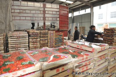 据市场工作人员告诉记者:“大市场最热闹的时候是凌晨三四点钟,果农们将草莓送来,称重、分解、装箱,再运往北京、天津等地。”