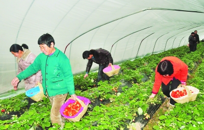 在合肥,以往提起草莓第一印象常常是长丰草莓,如今肥西草莓也上市了。在肥西县小庙镇草莓生产基地里,农民们正在采摘新鲜诱人的“红颜”草莓。基地草莓种植使用淠史杭优质水源灌溉,果大味甜、鲜嫩多汁,受到了人们的欢迎,已进驻周谷堆等各大批发市场,种植草莓的农户们年收入也从原来8000多元增加到现在的每年5万元左右。