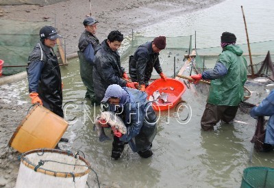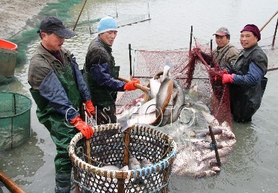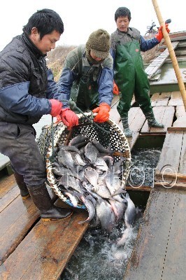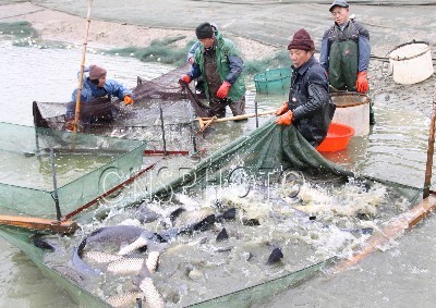 连日来,江苏省宜兴市众多养鱼专业户忙着干塘起鱼,以供应春节市场。目前,宜兴市养鱼面积达7万多亩,养鱼是该市农民的重要收入之一。