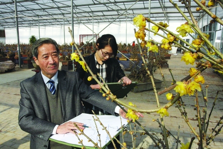 素有“鄢陵蜡梅冠天下”之美誉的鄢陵县,近日吸引了许多观赏蜡梅的游客。鄢陵是我国著名的花木之乡,是我国“南花北移、北花南迁”的天然驯化基地。该县目前花卉种植面积已达58万亩,品种2400余个,专业村122个,总产值约30亿元,尤以蜡梅种植最为有名。图为著名画家张书留(左)在鄢陵县采风。