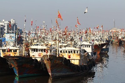 上岸过年的渔民们贴上春联,挂上彩旗,阵势蔚为壮观。江苏启东吕四渔港是中国沿海地区的六大中心渔港之一,盛产鲳鱼、带鱼等2000多种海产品,海蜇、紫菜和文蛤等在国内国际市场上享有极高的知名度和美誉度。