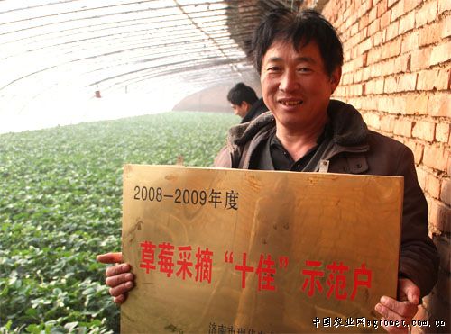 吕桂山是历城区董家镇张而村村民,1996年开始在村里种草莓,从刚开始的一个草莓棚到现在三个草莓棚、一个桃棚、一个杏棚,到今年已经有16个年头了。这些年,老吕的经济收入提高了,他的种植技术也得到了认可。2009年被评为了“草莓采摘‘十佳’示范户”,2011年董家镇又评他为“草莓采摘诚信户”。对于“诚信户”这块奖牌老吕很看重:这个评选标准不单是种草莓的品种全、口感好、产量多、个头大、外观美,还要在平时卖草莓的时候足斤足两、讲究诚信。