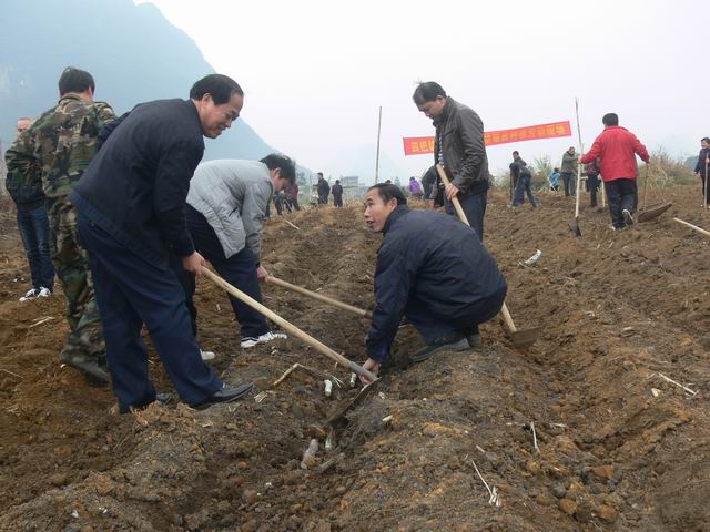 1月30日,罗城仫佬族自治县农业局组织干部职工到四把镇新印村坝新屯参加种植甘蔗劳动。