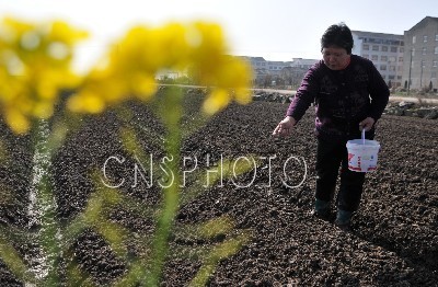2012年2月1日,在台州椒江区前所街道六联村,村民正在田间播种豆子。