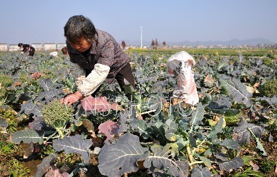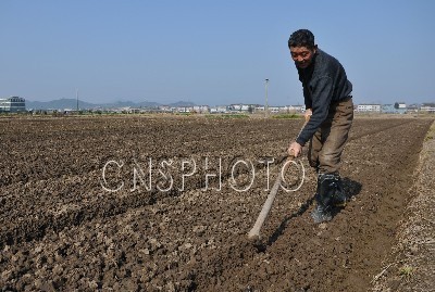 2012年2月1日,在台州椒江区前所街道六联村,村民正在锄地准备播种农作物。