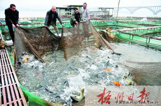 长洲水利枢纽蓄水后,库区水面开阔,水位相对稳定,为开发水产养殖提供了极佳的条件。位于藤县西江大桥上游的这个网箱养殖场由藤县西江养殖发展有限公司开发,总面积达3万平方米,目前已全部投放鱼苗,其中有5000平方米网箱的鲩鱼、鲤鱼等已达到捕捞标准,最大的有四五公斤重,将于近期陆续上市。