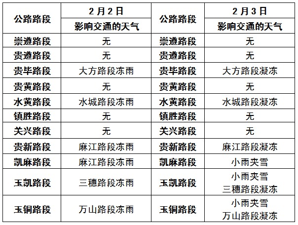 目前由于贵州各地返程的客流呈增加趋势,湿滑的道路给交通安全造成了较大压力。据省气象台预计,今明两天省内部分路段将出现冻雨或凝冻,一些路段还有小雨夹雪。(上图)气象部门提醒行经相关路段的司机朋友们小心驾驶。