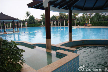 由于气温较低,海口游泳池内人员稀少,大部分人都改泡温泉。(图片来源:新浪微博)