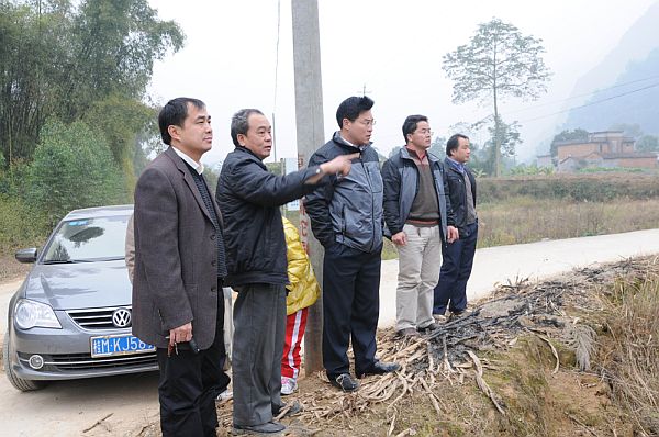 大化瑶族自治县科技局、百马乡领导与村干在现场策划野菊花基地建设