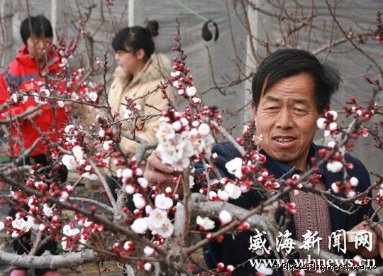 虽然眼下仍是天寒地冻,但葛家镇黄龙岘村的果树大棚内已是春意盎然,果农们开始忙着为果树授粉。图为2月1日果农王运方在自家的杏树大棚内为果树授粉。