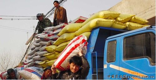 1月31日,天刚放晴,在铜陵县胥坝乡洪楼村,村民们正将购买的一袋袋化肥扛回家。据了解,为抓好农业生产,铜陵县胥坝乡农民近日纷纷为春耕生产准备农资,同时,不少从事农资经营的个体商户也抓住这一商机送肥上门,方便农户就近购买。