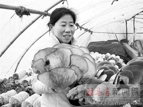 近年来,遂平县玉山镇着力拓宽农民增收渠道,积极引导农民种植蘑菇。图为该镇悦庄村农户采摘下来的“蘑菇王”。