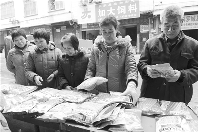 春耕生产在即,罗城仫佬族自治县农民纷纷进城选购优质种子闹春耕。据县种子站介绍,为满足农民需要,已从外地陆续调进100多吨的优质玉米和水稻种子,确保春耕生产顺利进行。这是2月2日,该县农民在种子市场选购优质种子。